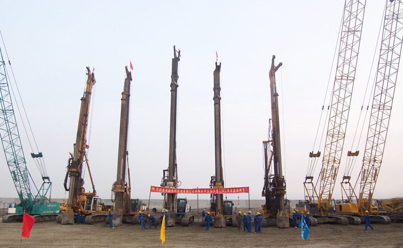我公司完成三岔雙向擠擴(kuò)旋挖鉆孔灌注樁,樁徑1.4m,每根樁三個(gè)盤徑2.4m的承力盤,混凝土等級(jí)C40,共720根樁,并完成了樁端后壓漿、鑿樁頭及地面接樁工作,共計(jì)70695m³混凝土;振動(dòng)沉管碎石樁4416根;碎石墊層25794 m3;混凝土地坪施工12766m2。